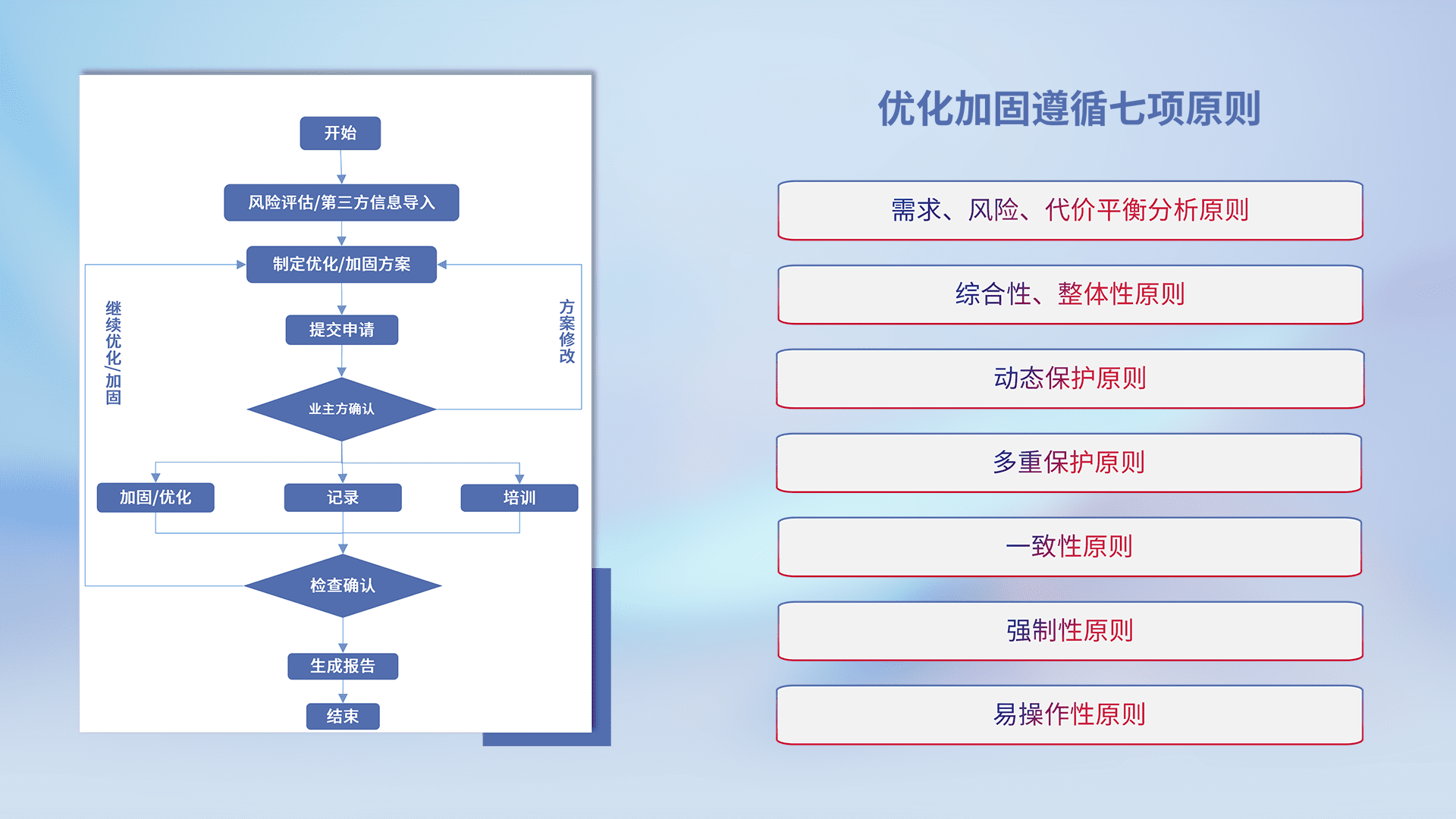 通过专业的法律咨询解读、、、合规架构体现、、差异化解决方案、、测试实施支持等服务,,,为客户量身打造等保合规体系。。